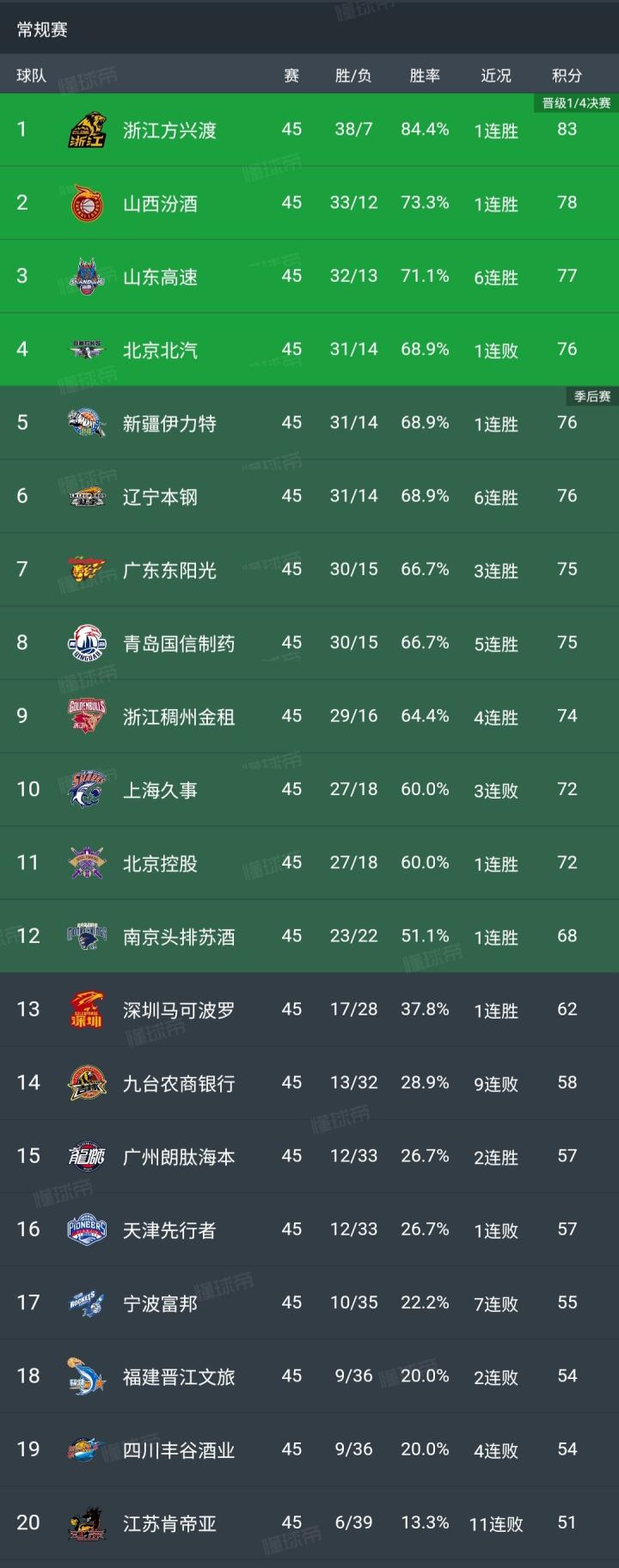 目前,排名第一的广厦、排名第二的山西和排名第十二的同曦队已经确定了季后赛的排名席位,而3-11名的最终排位仍然尚未落定,需要等待今晚的最终比赛结果。