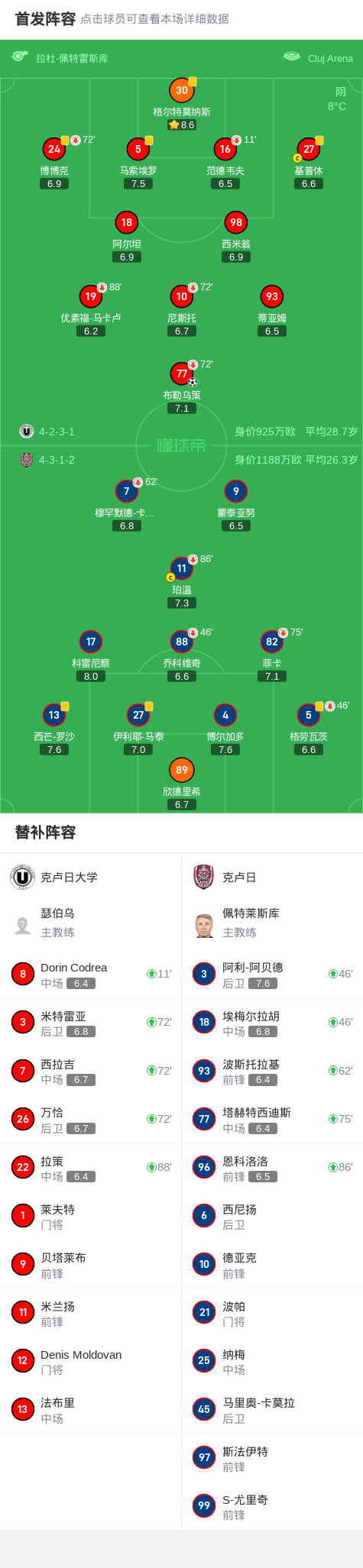克卢日大学1-0克卢日,布勒乌策助球队取胜战报bot @懂球帝2025-04-01 03:27北京时间4月1日,罗马尼亚足球甲级联赛争冠组第2轮,克卢日大学主场迎战克卢日。比赛中,布勒乌策为克卢日大学打入制胜一球。最终,克卢日大学以1-0战胜克卢日。点击查看本场比赛详细数据>>点击查看罗甲完整积分榜>>精彩瞬间第43分钟,克卢日大学球员布勒乌策打入一球。 球队阵容 技术统计 展开更多
