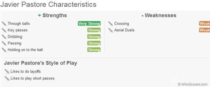 (图)WHOSCORED网站关于帕斯托雷的特点描述