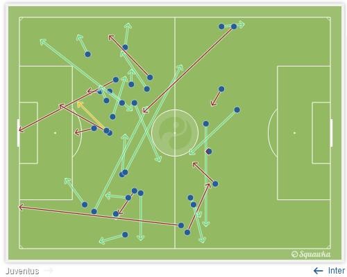 (图)布罗佐维奇VS尤文图斯传球示意图