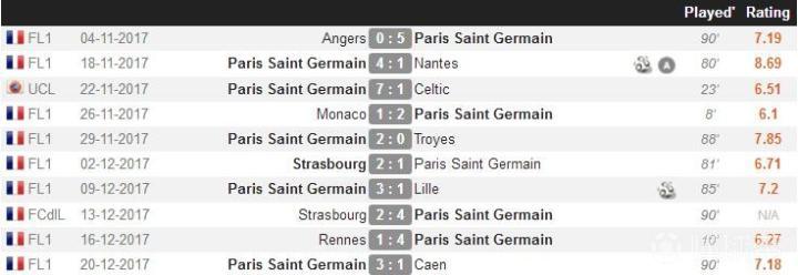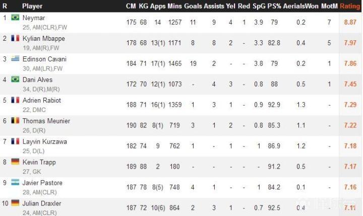 以WHOSCORED评分为标准,帕斯托雷赛季平均分7.16分,法甲第19轮巴黎3-1胜卡昂的比赛他的单场评分7.18分,最接近他的平均水平。