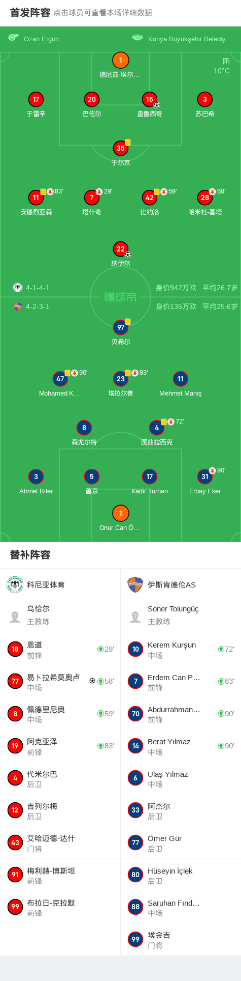 科尼亚体育3-0大胜伊斯肯德伦AS,查鲁西奇破门,易卜拉希莫奥卢替补1传1射