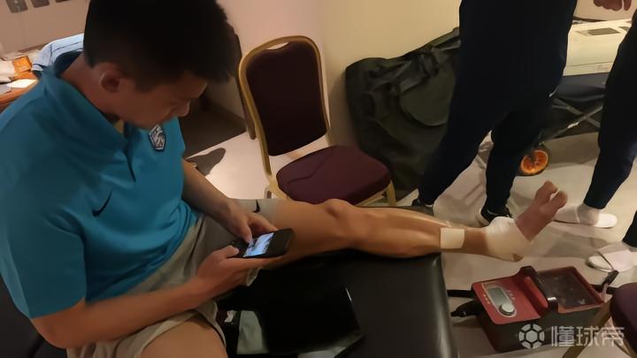 早日康复,网传照片显示三镇后卫王毅的脚踝已缠上绷带