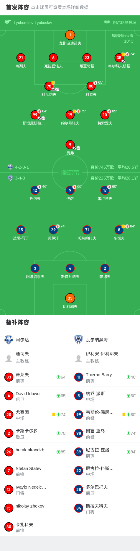 第48分钟,阿尔达球员斯坦尼斯拉夫-伊万诺夫助攻科瓦切夫打入一球。
