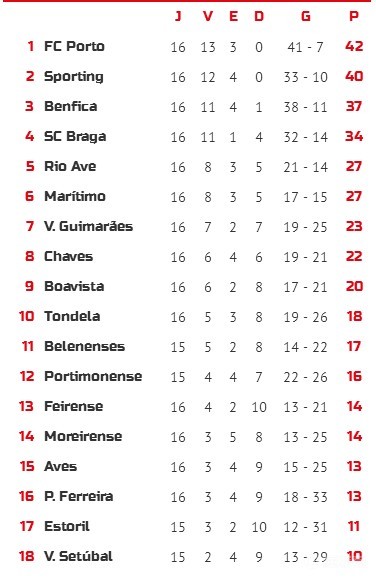 因为葡萄牙体育与本菲卡战平,波尔图以2分的优势独自领跑。在连续输球后,塞图巴尔已跌至积分榜的倒数第1位,而摆脱副班长位置的埃斯托里尔,仍没有逃出降级区。