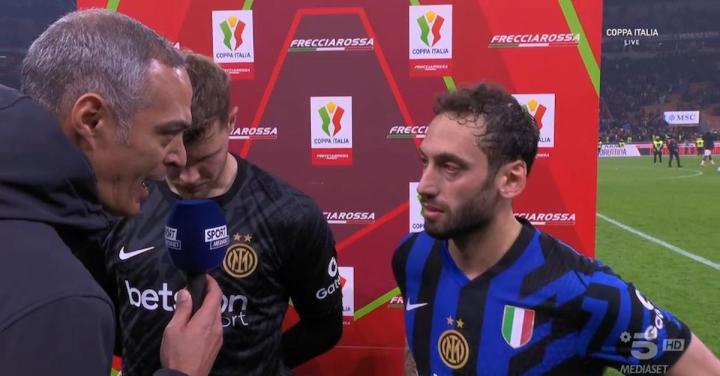 北京时间4月3日,在意大利杯半决赛首回合的米兰德比中,恰尔汗奥卢的远射得分帮助国际米兰拿到了一场1-1的平局,赛后这位土耳其球星接受了慢镜头的采访。