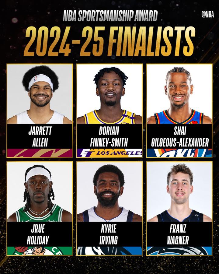 NBA体育道德风尚奖候选人出炉:欧文领衔,亚历山大在列