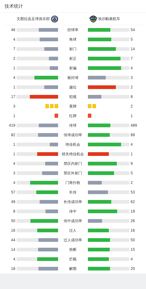第36分钟,文图拉县足球俱乐部球队吃到第二张黄牌。