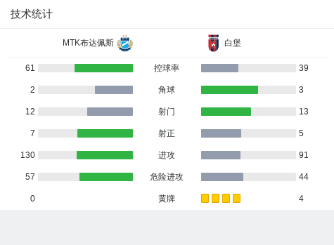 MTK布达佩斯4-2逆转白堡,尤里瑙、伊什特万-博格纳尔破门