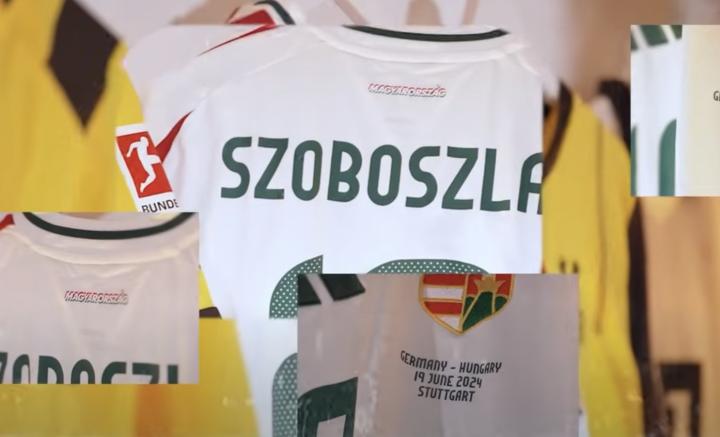 阿德耶米:“我刚才看到这是六月份的。其实他寄给我的,我没有亲自去拿。这是一位匈牙利球员,索博斯洛伊,他是我在萨尔茨堡认识的好朋友,我们一起踢了很长时间的球,关系很好。他后来早早转会到莱比锡,而我则在萨尔茨堡又踢了几年,但我们保持了良好的友谊。我绝对想在这里展示这件球衣。”