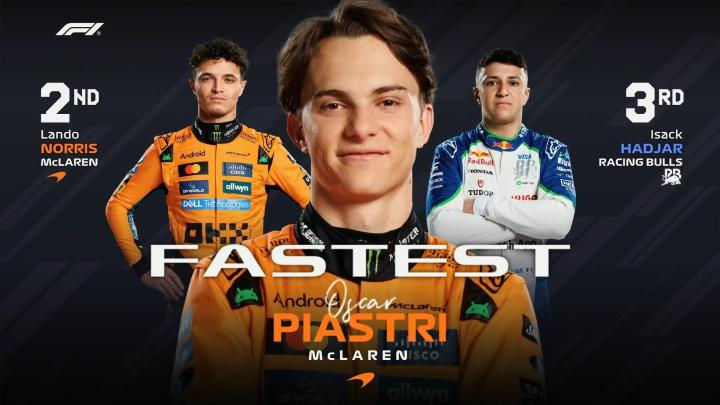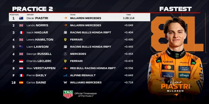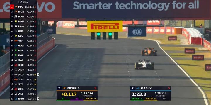 两台迈凯伦继续做着最快圈,皮亚斯特里上到榜首,诺里斯稍稍落后!
