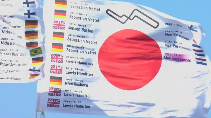 日本车迷制作了两幅铃鹿赛道过往冠军的旗帜,舒马赫、维特尔、汉密尔顿、维斯塔潘曾多次夺冠!