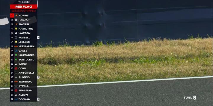 北京时间4月4日,F1日本大奖赛二练结束。皮亚斯特里全场最快,诺里斯、哈贾尔位居二三。汉密尔顿第4,劳森第5,维斯塔潘第8,角田裕毅第18。全场四次红旗:杜汉高速失控上墙退赛,阿隆索的赛车陷入砂石地退赛,8号弯、17号弯草地起火。