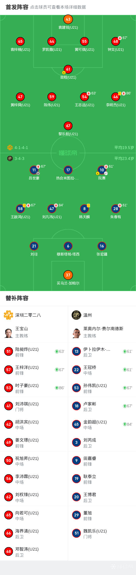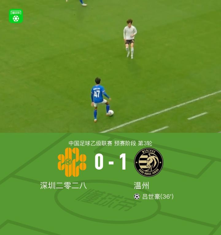 温州1-0深圳二零二八,吕世豪一击制胜战报bot @懂球帝2025-04-04 17:59北京时间4月4日中国足球乙级联赛 预赛阶段 第3轮,深圳二零二八主场对阵温州。温州吕世豪破门。最终比分深圳二零二八 0-1 温州。点击查看本场比赛详细数据>>点击查看中乙完整积分榜>>精彩瞬间第36分钟,温州球员阮赛助攻吕世豪打入一球。球队阵容展开更多