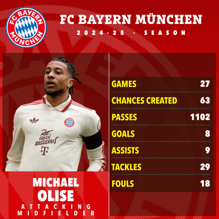 在孔帕尼的带领下,奥利塞已经在41场比赛中贡献了13个进球和12次助攻。尽管奥利塞已经在德国待了将近一个赛季,但他仍在努力掌握这门语言。