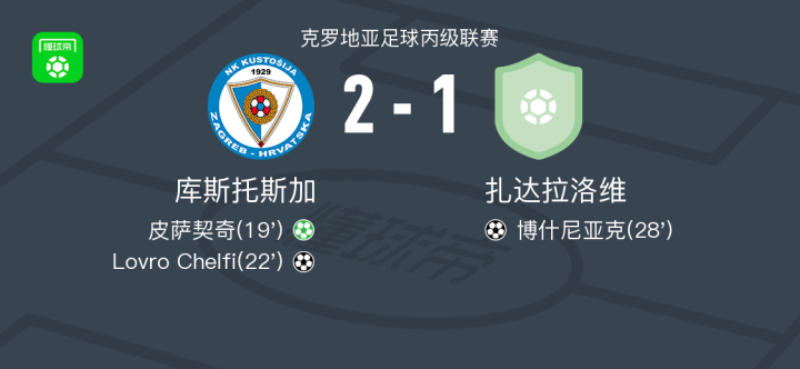 库斯托斯加2-1扎达拉洛维,Lovro Chelfi破门,皮萨契奇点射
