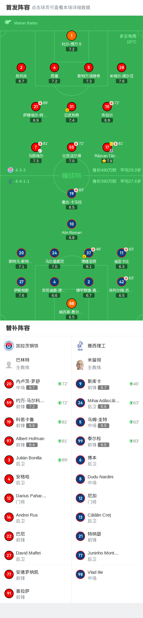 北京时间4月4日,罗马尼亚足球甲级联赛保级组第3轮,加拉茨钢铁主场迎战雅西理工。比赛中,加拉茨钢铁由Răzvan Tănasă完成破门,为球队取得领先。最终,加拉茨钢铁1-0战胜雅西理工。