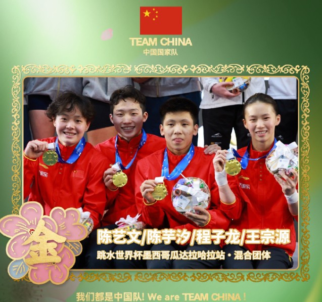 恭喜,跳水世界杯中国队混合团体夺金南京伦敦体育场小杨 @懂球帝2025-04-05 11:19北京时间4月5日,2025年世界泳联跳水世界杯首站墨西哥瓜达拉哈拉站的混合团体决赛,由陈艺文、陈芋汐、王宗源和程子龙组成的中国队也以489.10分的总成绩强势夺冠。意大利队摘银、德国队摘铜。展开更多