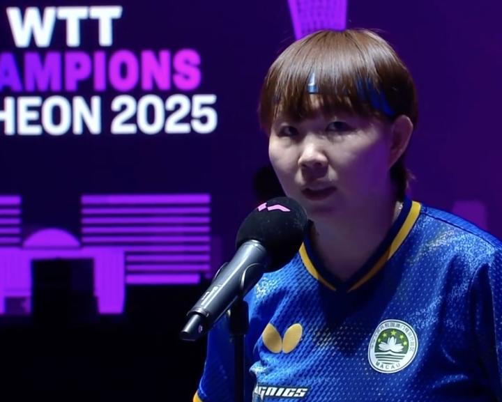 4月5日,WTT仁川冠军赛女单1/4决赛,中国澳门选手朱雨玲4-2逆转日本选手大藤沙月,晋级四强。赛后,她接受了采访。