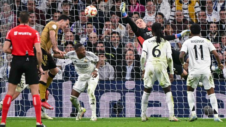 库尔图瓦虽以联赛场均0.92球(24场22失)竞争萨莫拉奖,但欧冠12场丢18球的表现拖累整体数据。卢宁则经历“天使与魔鬼”的一周:首回合六次神扑,次回合仅一次扑救且对两粒失球负有责任,其场均1.58(12场19失)让稳定性存疑。