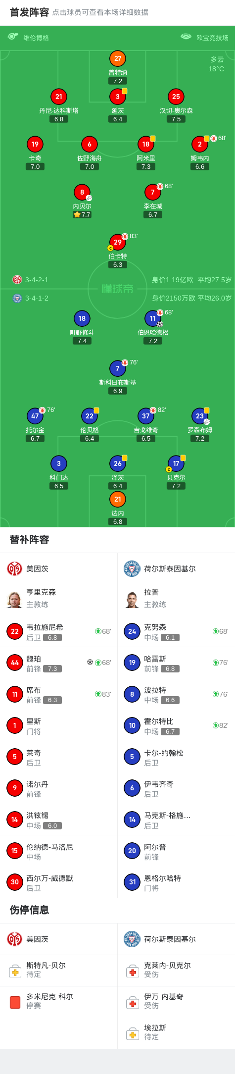 第75分钟,美因茨球员内贝尔助攻魏珀打入一球。