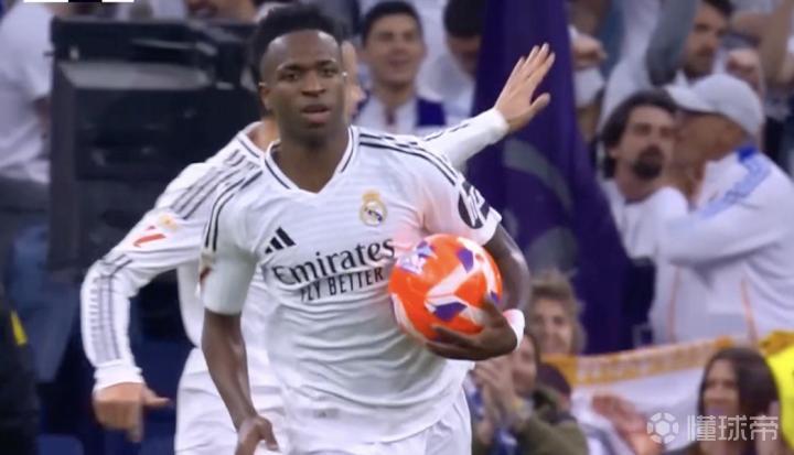此役主场对阵瓦伦西亚,上半场罚丢点球后,维尼修斯在比赛第50分钟接贝林厄姆助攻破门,帮助皇家马德里扳平比分。