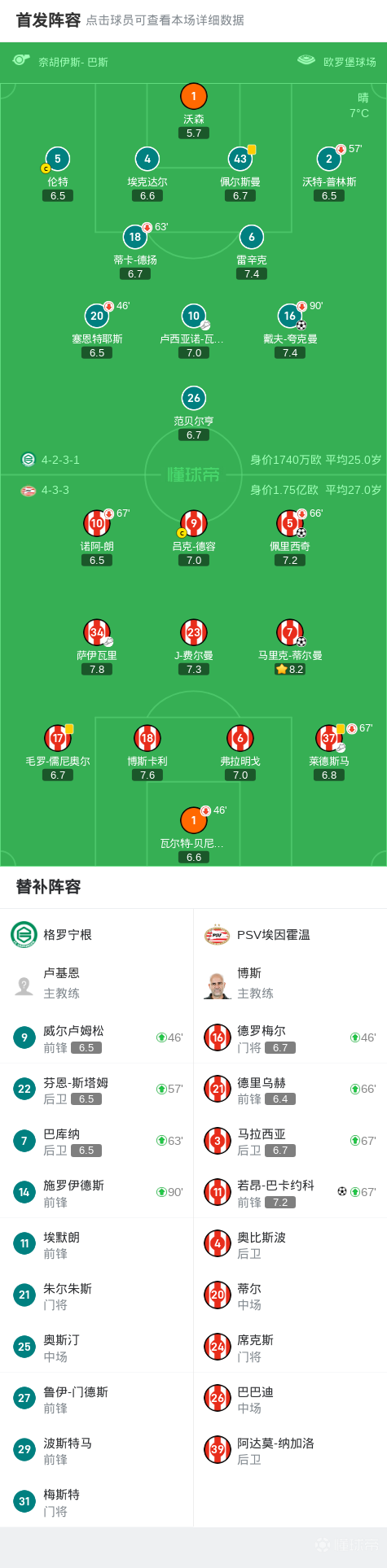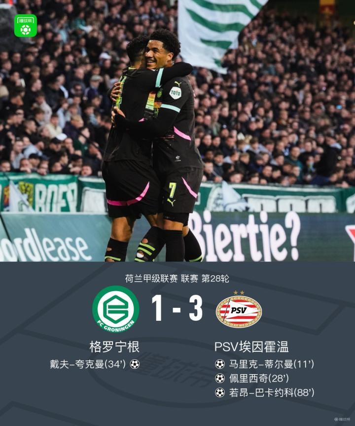 格罗宁根1-3PSV埃因霍温,佩里西奇、巴卡约科破门