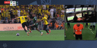 第45分钟,伊万-托尼倒在禁区,裁判经VAR后表示没有问题