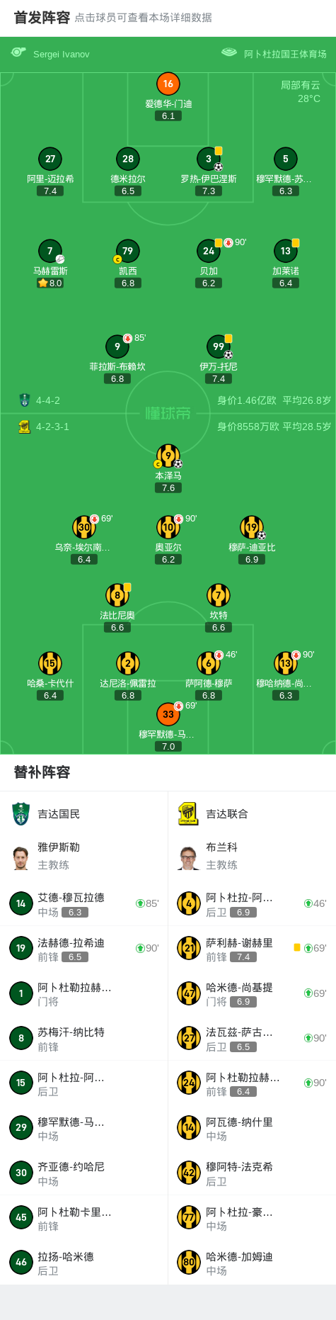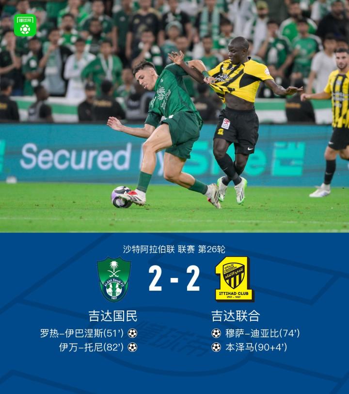吉达国民2-2吉达联合,本泽马补时绝平,伊万-托尼建功