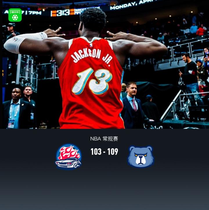 灰熊109-103险胜活塞,贝恩38+7+3,小贾伦-杰克逊27+11