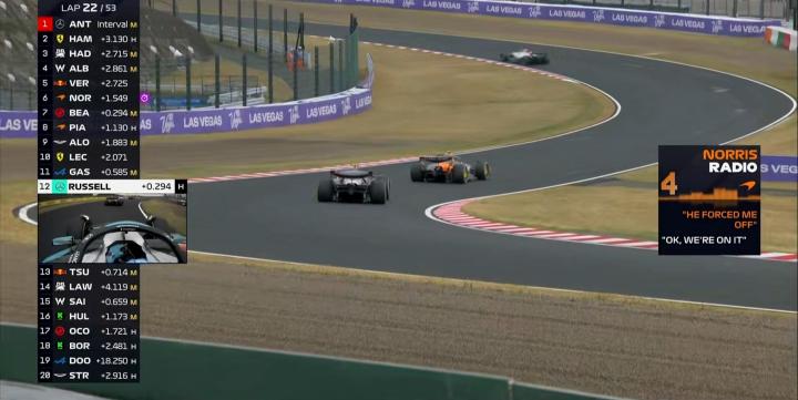 诺里斯表示自己被维斯塔潘推到了草地上;