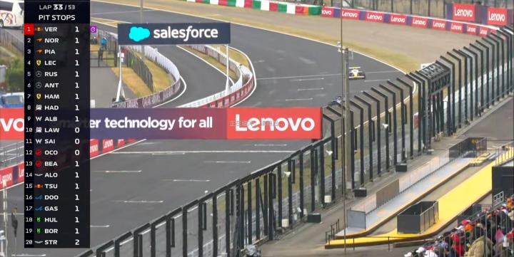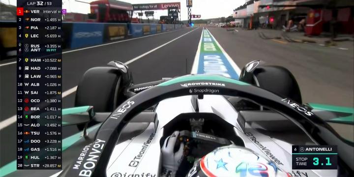 第32圈:安东内利31圈的黄胎进站完成一停,维斯塔潘重新开始领跑!