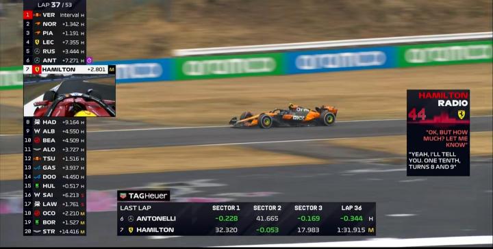 第37圈:汉密尔顿与阿达米的沟通还是不够好,工程师并未直接传达汉密尔顿想要的弯角速度差的信息!