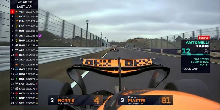 F1日本正赛:维斯塔潘四连冠,迈凯伦二三,角田P12&最佳车手