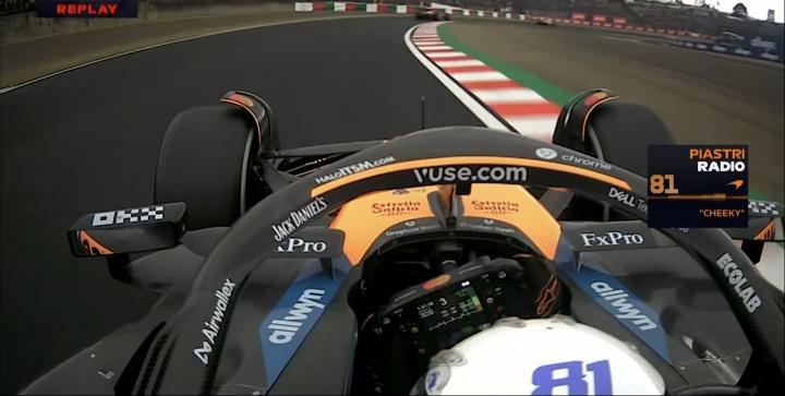 诺里斯在最后两个弯想要拼晚刹车,但赛车失控直接切弯,皮亚斯特里锐评:“Cheeky(放肆的,鲁莽的)”