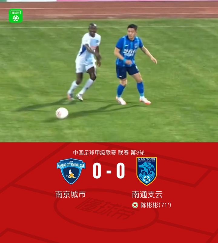南京城市0-0南通支云,陈彬彬失点