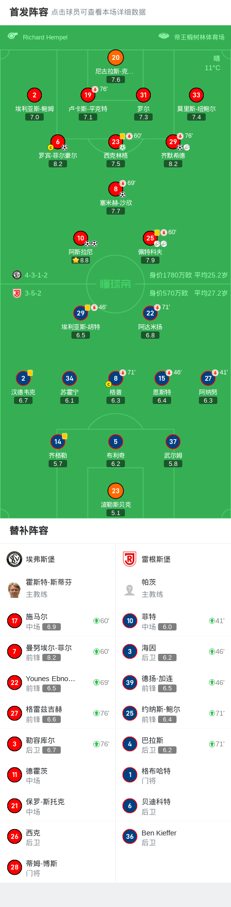 第57分钟,埃弗斯堡球员佩特科夫助攻塞米赫-沙欣打入一球。
