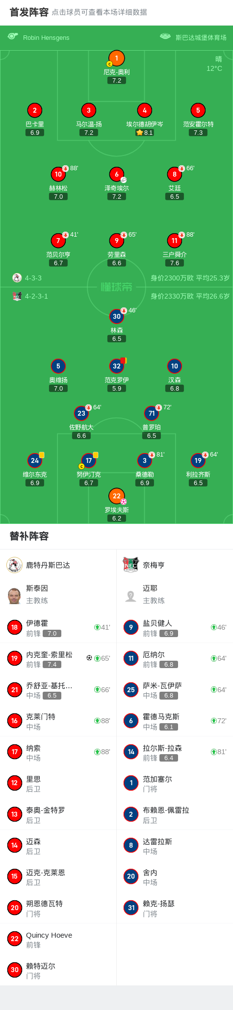 第33分钟,奈梅亨球员罗埃夫斯自摆乌龙。