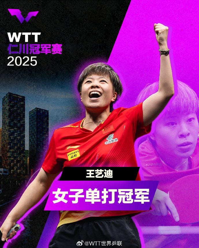 挽救4个赛点,王艺迪4-3险胜陈幸同夺WTT仁川冠军赛女单冠军我的靴子里面有蛇 @懂球帝2025-04-06 23:30北京时间4月6日,WTT仁川冠军赛女单决赛上演国乒德比,王艺迪4-3险胜陈幸同,夺得冠军。王艺迪在1-3落后的情况下连赢三局,两人在决胜局中打到12-10,王艺迪在6-10落后的情况下挽救4个赛点,连得6分最终惊险取胜。七局比分为11-9、8-11、9-11、12-14、11-9、11-6、12-10。展开更多
