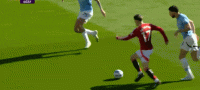第1分钟,加纳乔被鲁本-迪亚斯放倒,曼联获得前场任意球