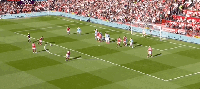 第2分钟,B费任意球直接攻门,被人墙挡出