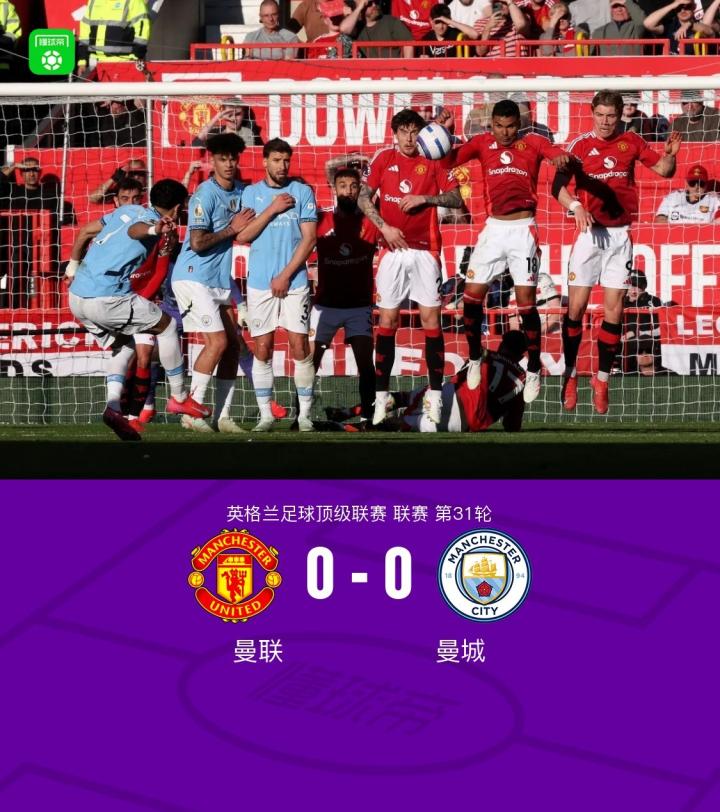 北京时间4月6日,英格兰足球顶级联赛第31轮,曼联主场迎战曼城。比赛中,双方均未能取得进球,最终以0-0的比分握手言和。比赛中,两队在攻防两端均有精彩表现,但均未能打破场上僵局。