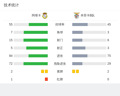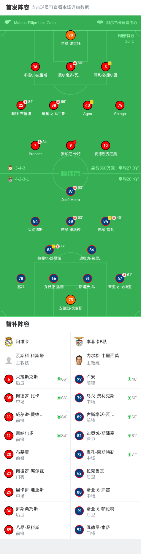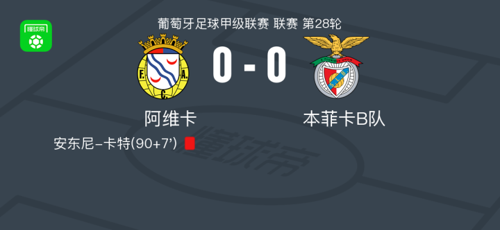 阿维卡0-0本菲卡B队,秋色平分战报bot @懂球帝2025-04-07 03:02北京时间4月7日葡萄牙足球甲级联赛 联赛 第28轮,阿维卡主场对阵本菲卡B队。最终比分阿维卡 0-0 本菲卡B队。点击查看本场比赛详细数据>>点击查看葡甲完整积分榜>>精彩瞬间下半场补时第7分钟,阿维卡球队安东尼-卡特吃到红牌。 球队阵容 技术统计 展开更多