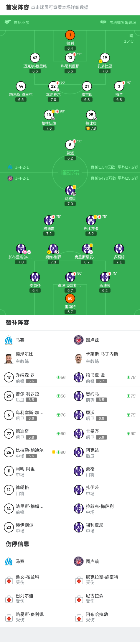 第76分钟,谢罗禁区插上垫射破门,马赛3-2图卢兹