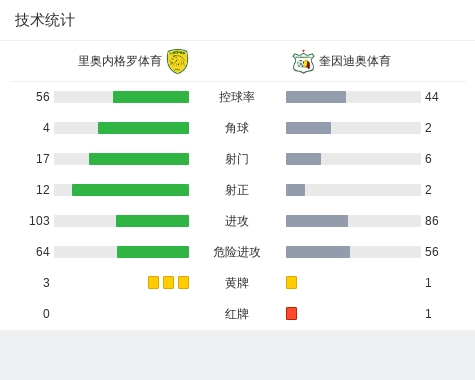第47分钟,里奥内格罗体育球员Juan Valencia打入一球。