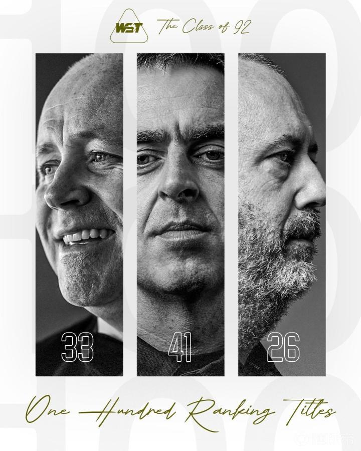 绝对传奇!斯诺克75三杰已夺得100个排名赛冠军