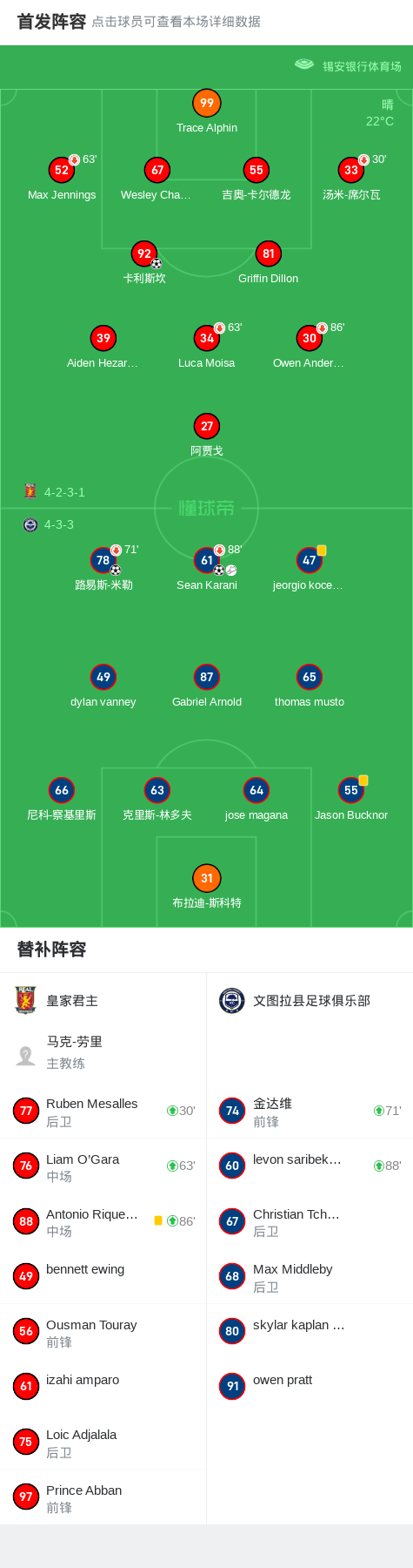 文图拉县足球俱乐部2-1皇家君主,路易斯-米勒建功,Sean Karani1射1传