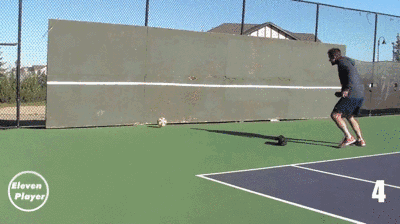 沿着墙壁前跑的时候,用右脚内侧把球停一下。
