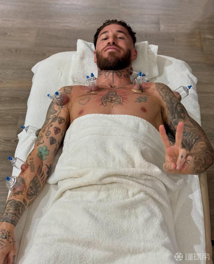 北京时间4月7日,前皇马队长拉莫斯更新了个人社交媒体,晒出了自己在休息日拔罐的照片。