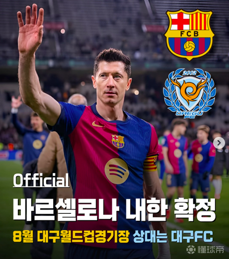 (官方)巴塞罗那今夏将访韩,8月份与大邱FC的比赛已经正式确定。